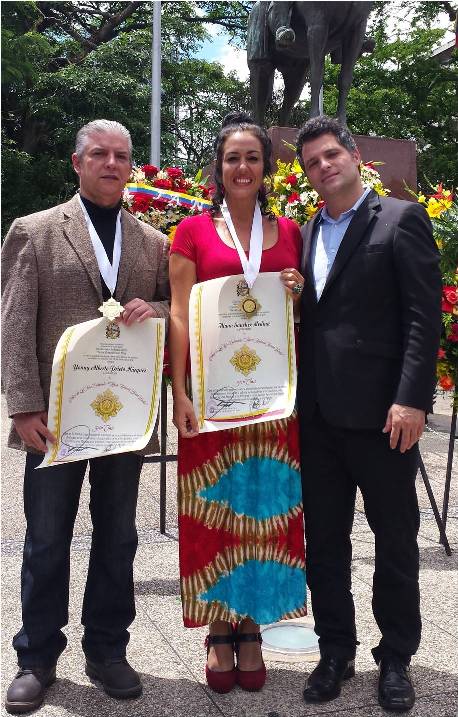 El pasado martes 5 de Julio, en acto efectuado en la Plaza Bolívar de la ciudad de San Cristóbal, con motivo de la celebración de la Declaración de la Independencia de Venezuela y presidido por el ciudadano Gobernador del Estado, Mayor José Gregorio Vielma Mora, acompañado de todo el gabinete gubernamental, entre ellos el Licenciado Oscar Armando Duque Pérez, Director de Cultura de Estado, fue condecorado el Licenciado Yonny Alberto Prieto Márquez Director de la Escuela de Música “Miguel Ángel Espinel” con la ORDEN DE LAS ARTES CULTURALES MARCO ANTONIO RIVERA USECHE”. Es importante resaltar que la orden mencionada es otorgada por primera vez como reconocimiento al trabajo realizado en pro del desarrollo cultural de nuestro Estado. ¡¡¡FELICITACIONES!!! En la fotografía de izquierda a derecha el Licenciado Alberto Prieto, la profesora Iliana Sánchez Medina, de la Escuela Regional de Teatro, condecorada y el Licenciado Oscar Duque Director de Cultura del Estado Táchira.